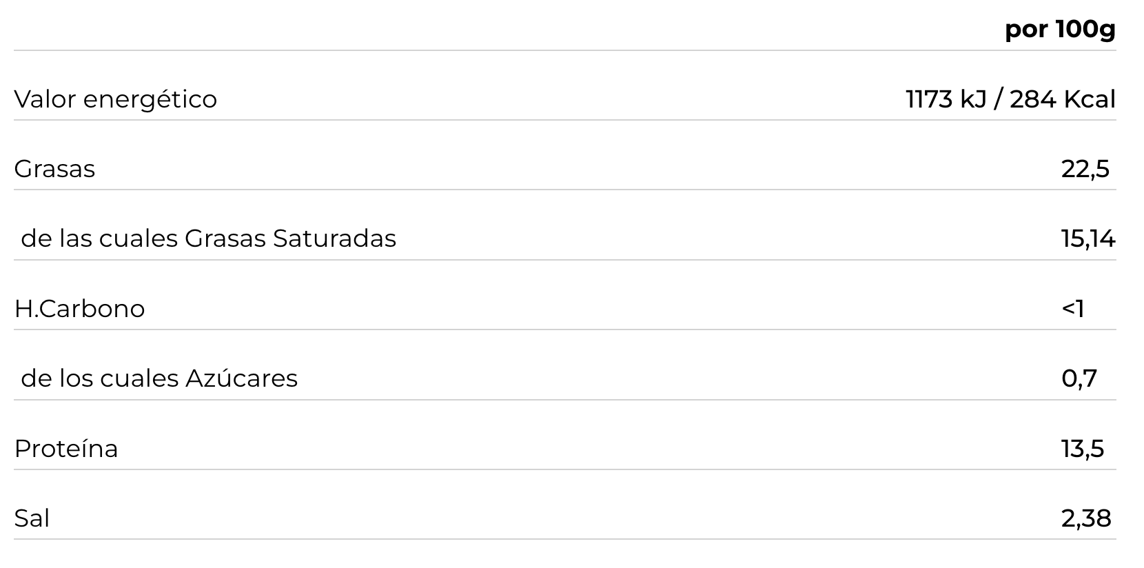 Ingredientes: Queso 50%, leche de oveja, mantequilla (crema de suero de leche de oveja, vaca y cabra), agua, sales fundentes E-331, E-452 y conservador E-202.