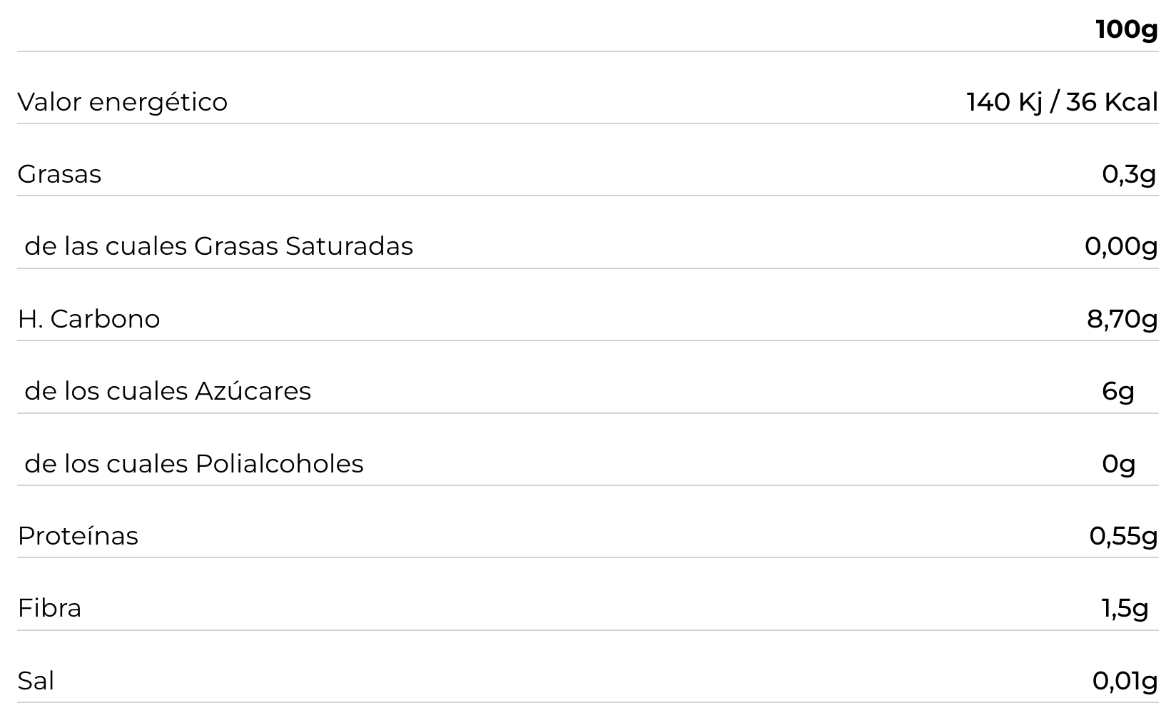 Ingredientes: Fresa (99%) y espesante (agar-agar)