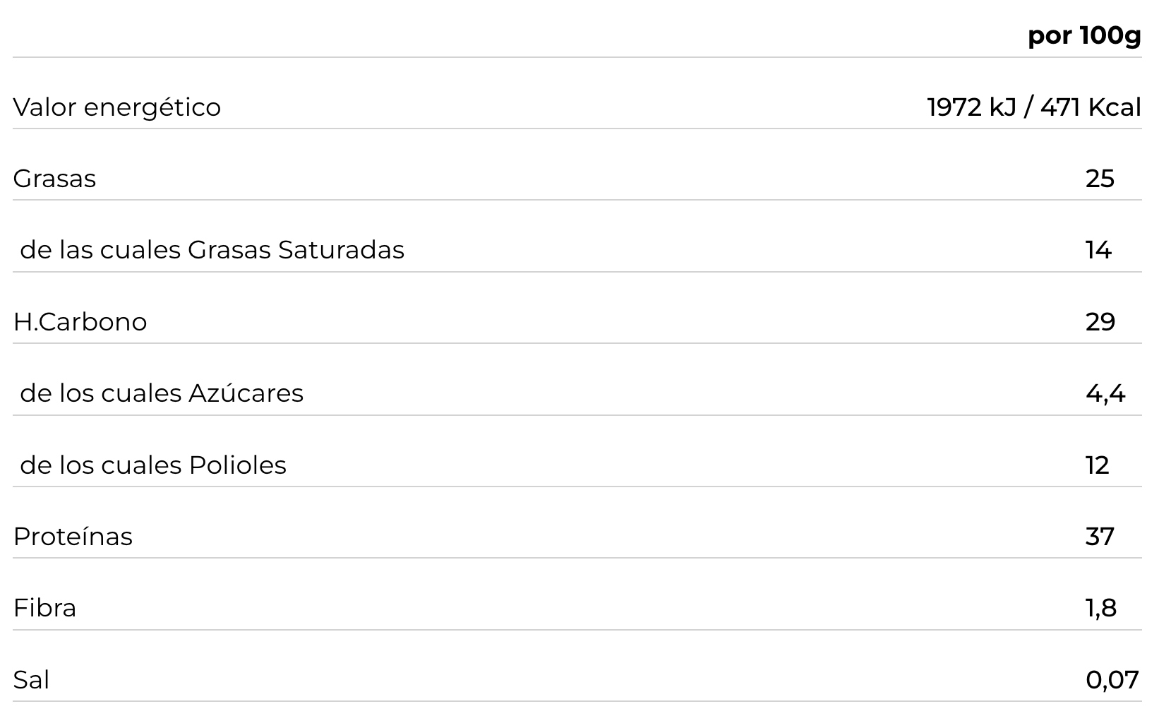 Contiene polioles: Un consumo excesivo puede tener efectos laxantes.